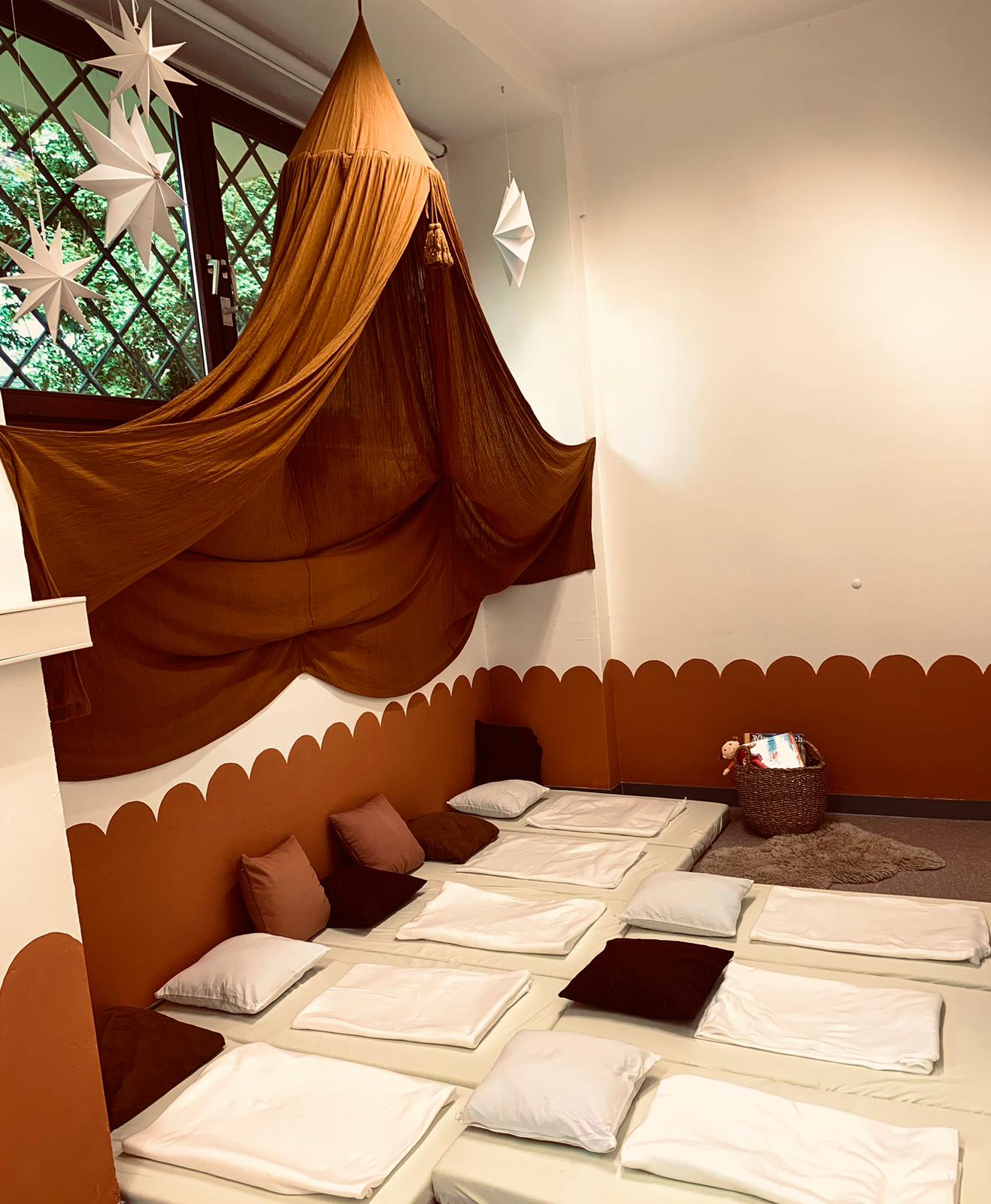 Auch der Schlaf- und Ruheraum ist ein wichtiger Ort, der den Kindern die Möglichkeit bietet, nach einem aufregenden Vormittag zu entspannen und neue Energie zu tanken.