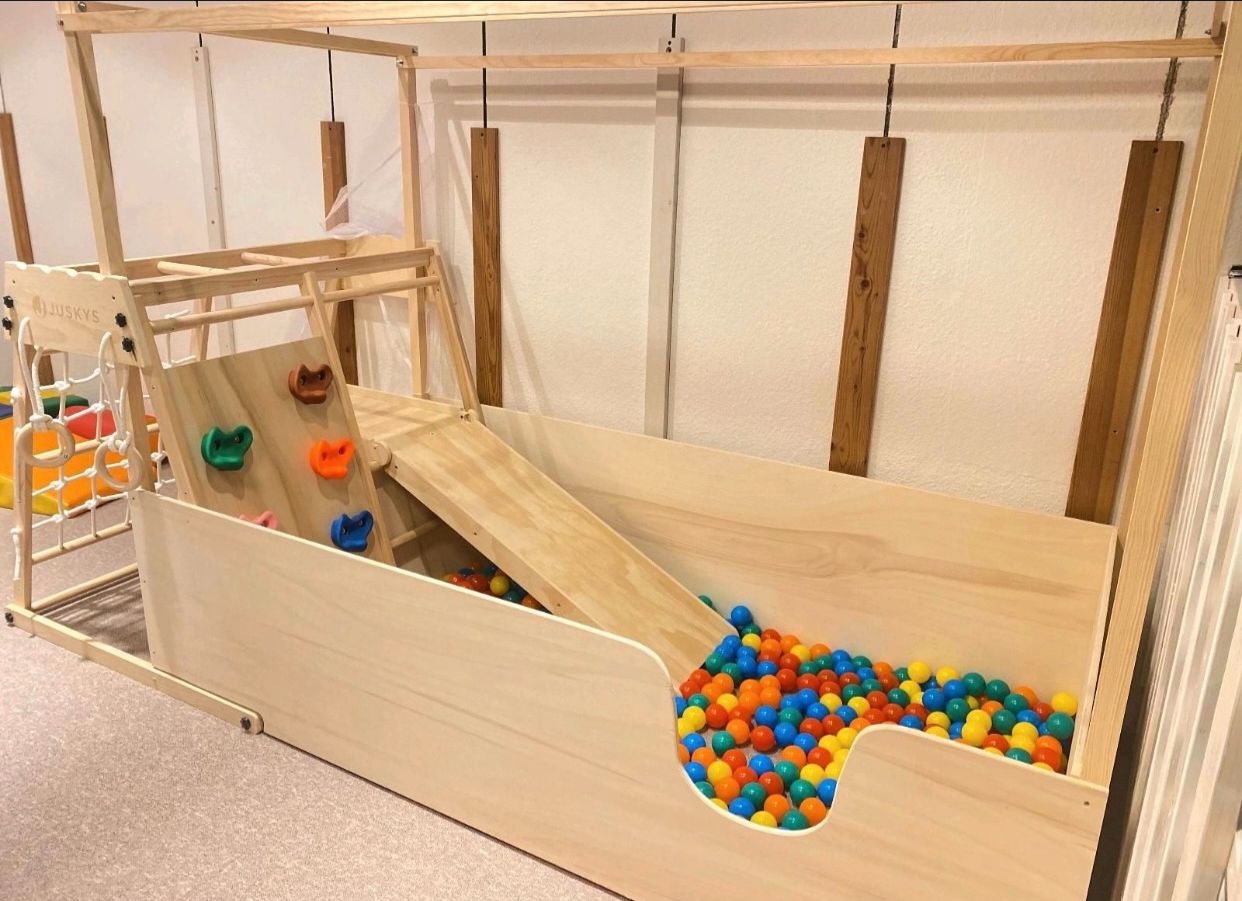 Ein Bällebad lädt zum spielerischen Eintauchen und Experimentieren ein, während ein Parkour mit verschiedenen Stationen die Kinder dazu anregt, ihre Geschicklichkeit zu testen.